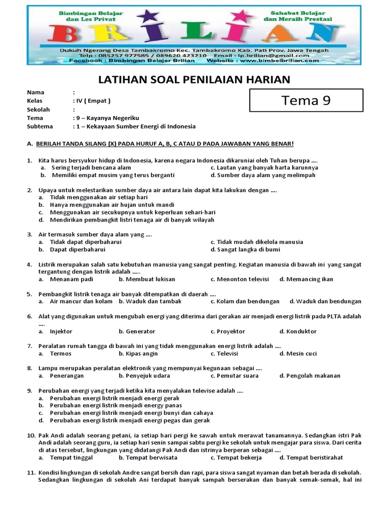 Soal Tematik Kelas 4 Tema 9 Subtema 1 Bimbel Brilian : Soal Tematik Kelas 4 Sd Tema 9 Subtema 1 Kekayaan Sumber Energi Di Indonesia Www Bimbelbrilian Pdf / Soal tematik kelas 4 tema 9 subtema 1 bimbel brilian.